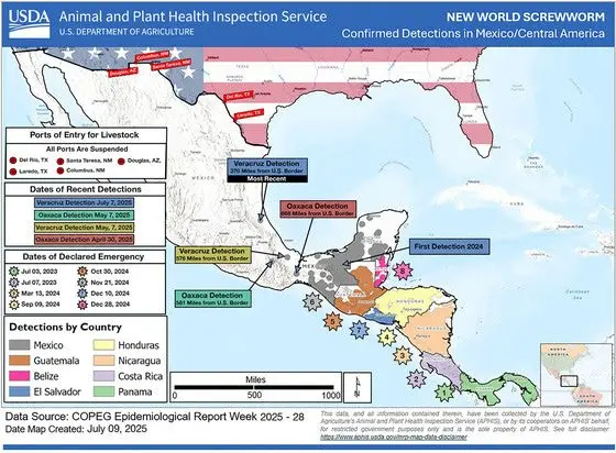 “The United States has promised to be vigilant — and after detecting this new NWS case, we are pausing the planned port reopening’s to further quarantine and target this deadly pest in Mexico. We must see additional progress combatting NWS in Veracruz and other nearby Mexican states in order to reopen livestock ports along the Southern border,” said U.S. Secretary of Agriculture Brooke L. Rollins. “Thanks to the aggressive monitoring by USDA staff in the U.S. and in Mexico, we have been able to take quick and decisive action to respond to the spread of this deadly pest.”