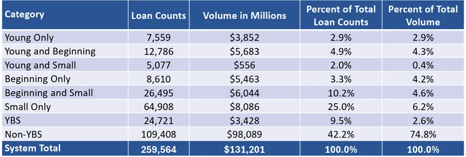 - Beginning Producers: 72,612 loans totaling $20.6 billion were made to beginning producers who have 10 years or less of experience.