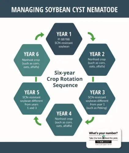 - Never grow varieties with Peking SCN resistance in consecutive soybean crops.