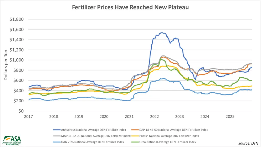 Previous analysis from the American Soybean Association has focused on revenue threats and opportunities for soybean prices. This analysis explores the rates of input expense increases as well as the complex and global underlying factors pushing prices higher.